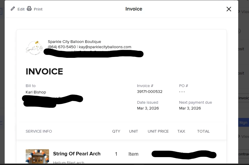 Here is the invoice from the project file I sent. As you can see there is no contact information, only the bill to.