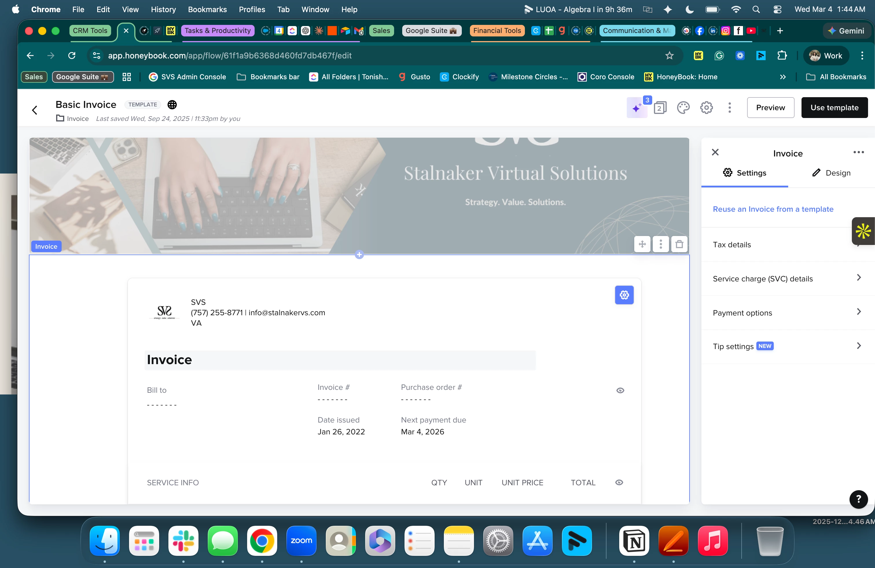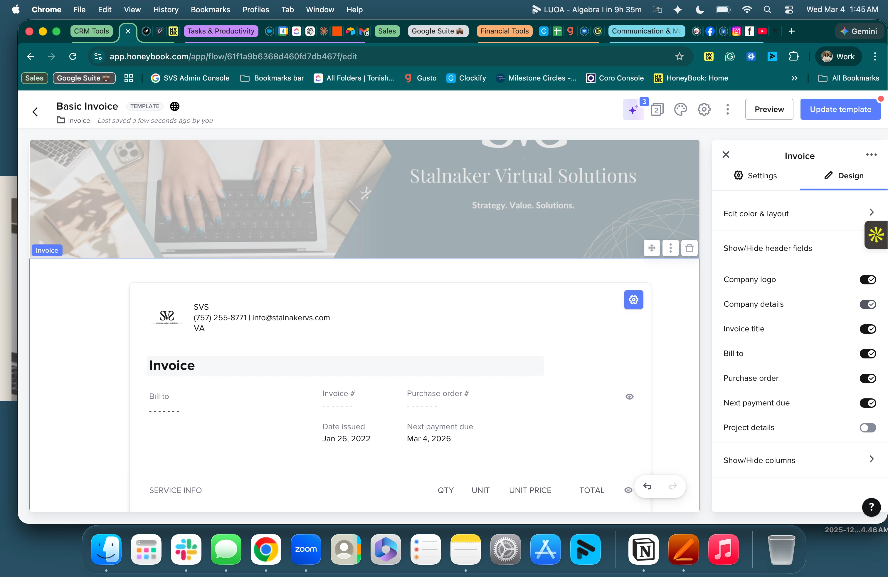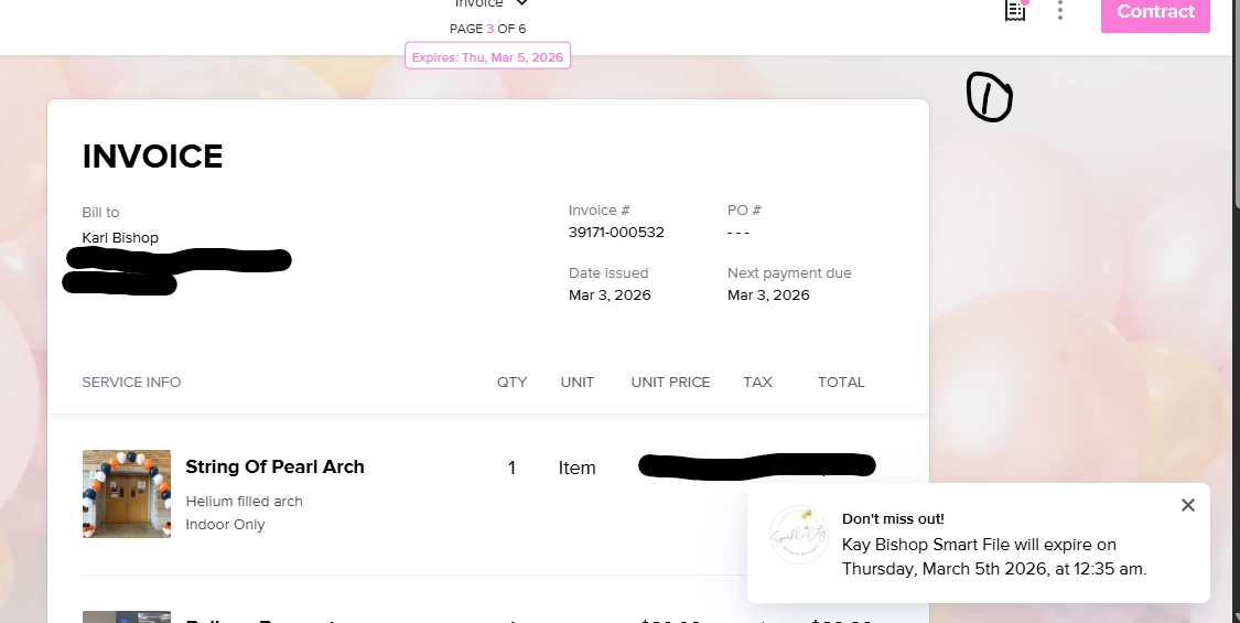 However, when I go through the administrative side (File Summary) and view the invoice our contact information shows