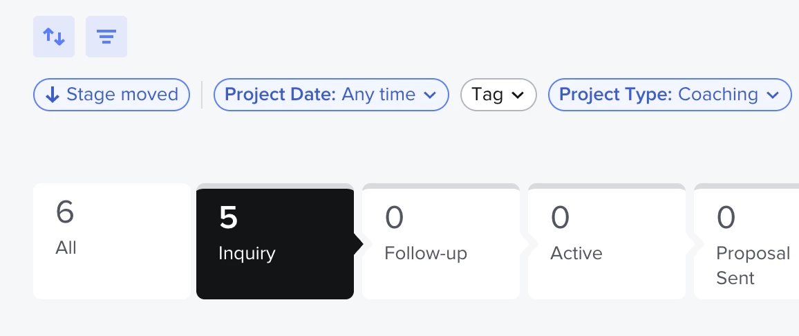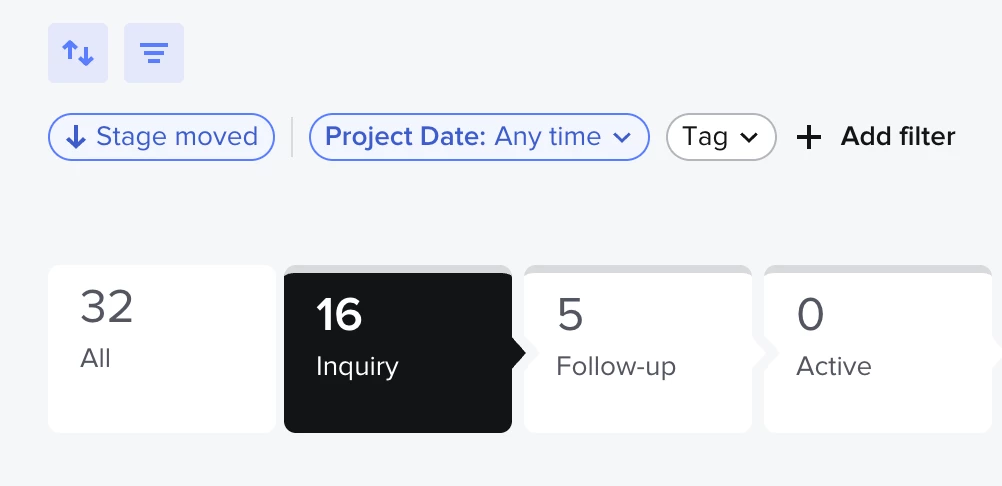 When you apply filters, the project counts shown in each pipeline stage will now reflect only the projects that match those filters. So if your pipeline shows 32 projects and a filter narrows that down to 6, the stage counts will update accordingly.