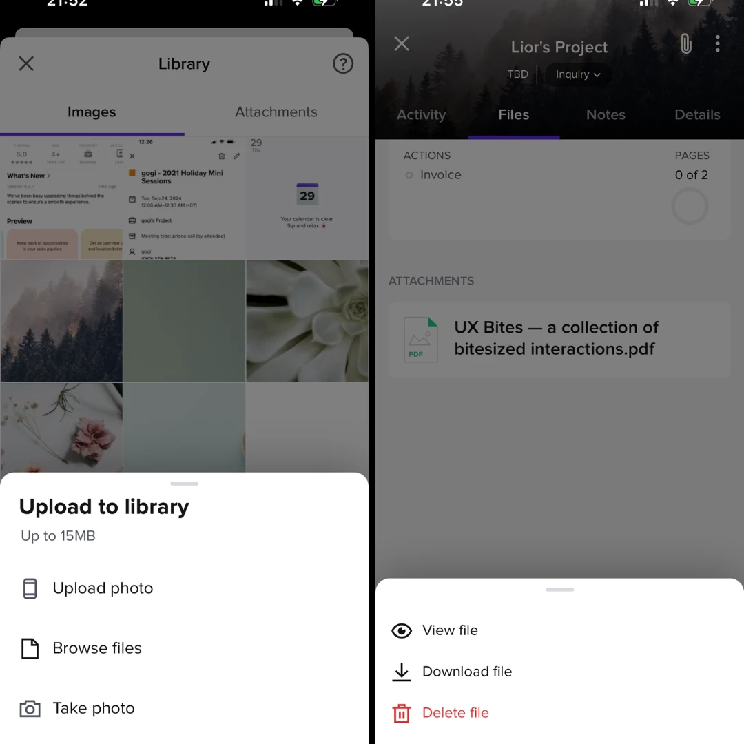 Now you can upload or download any file type - not just images - directly to your projects and Library from the mobile app.