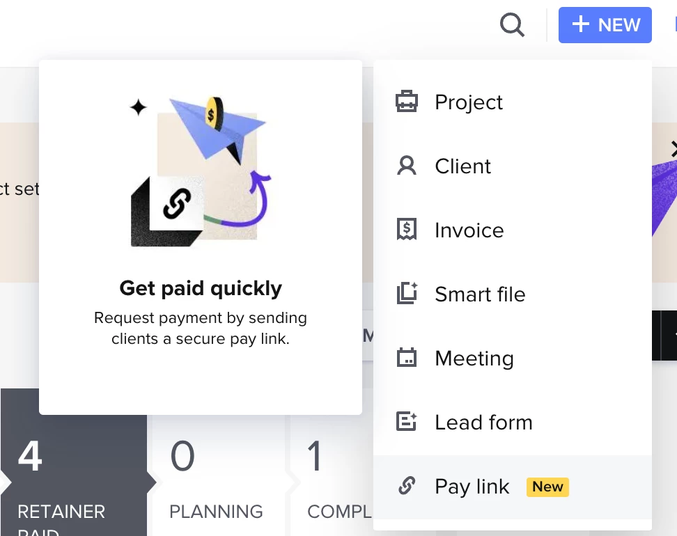 - New Client Functionality: From the dashboard, you can make an instant link for a brand new client
