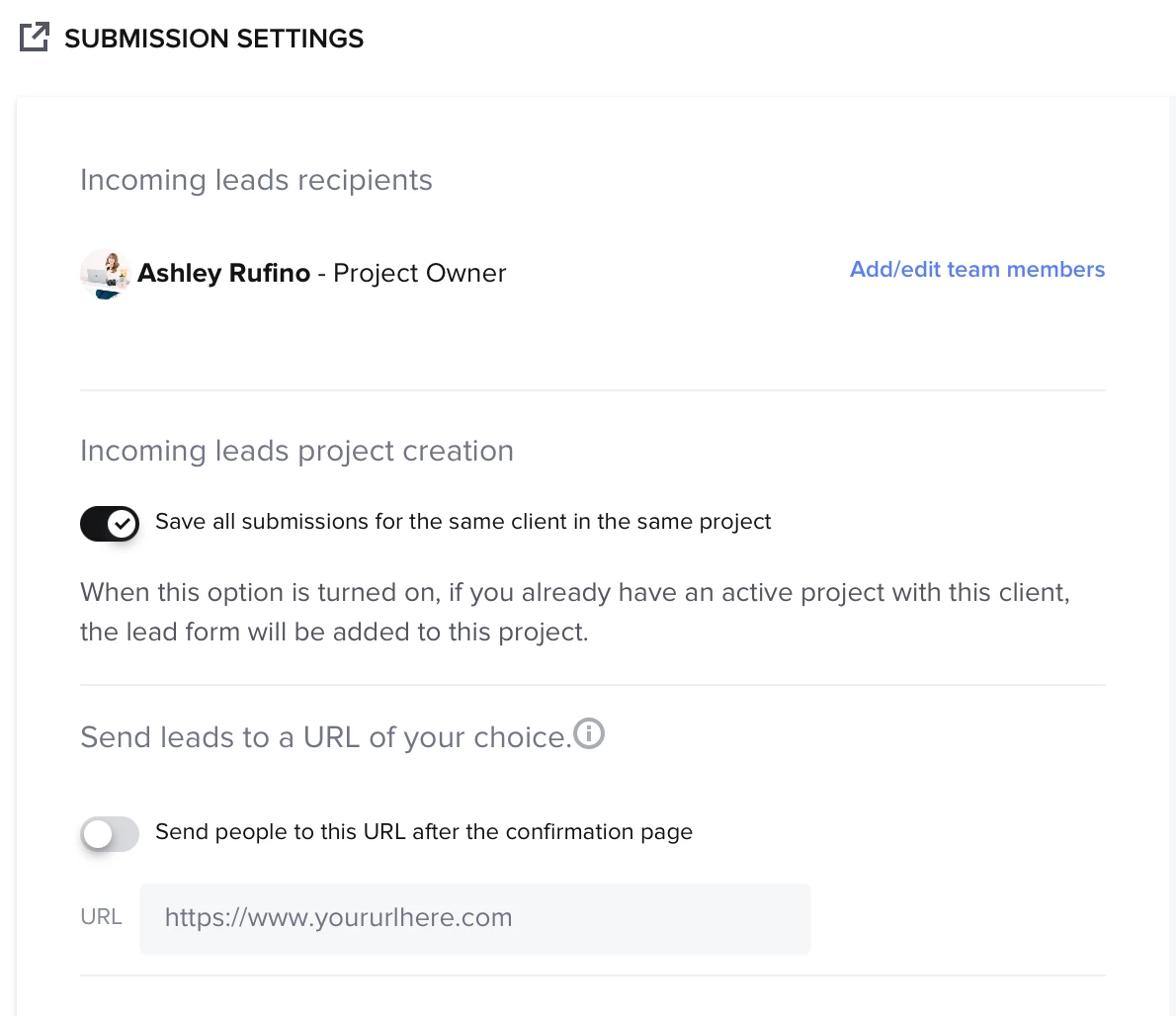 - Merge Existing Project: If client has an active project, you can merge the link to an existing project