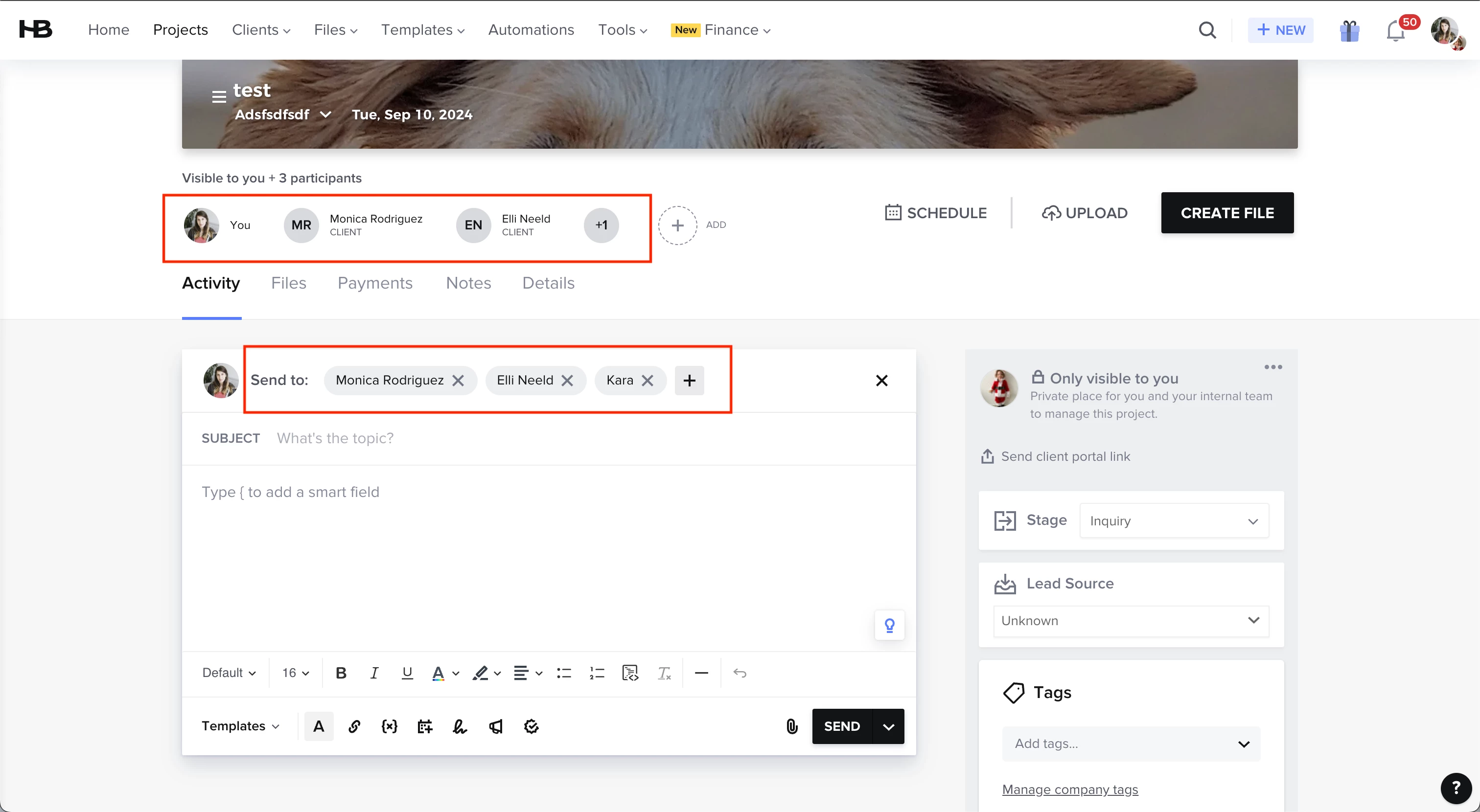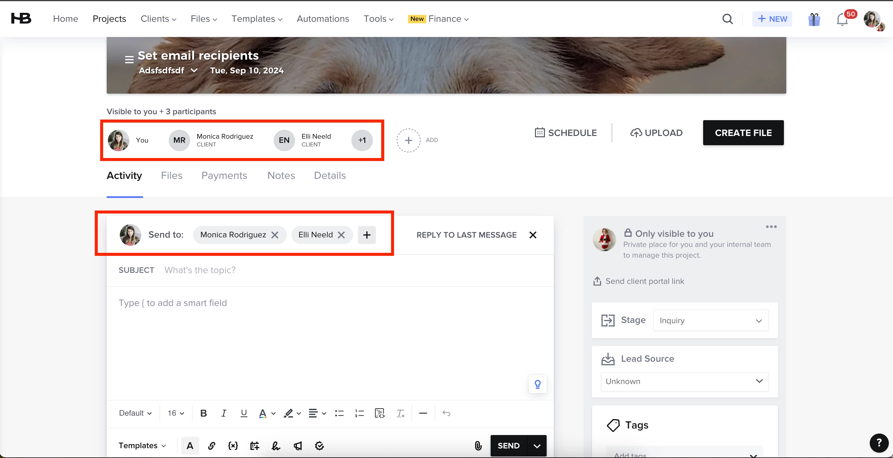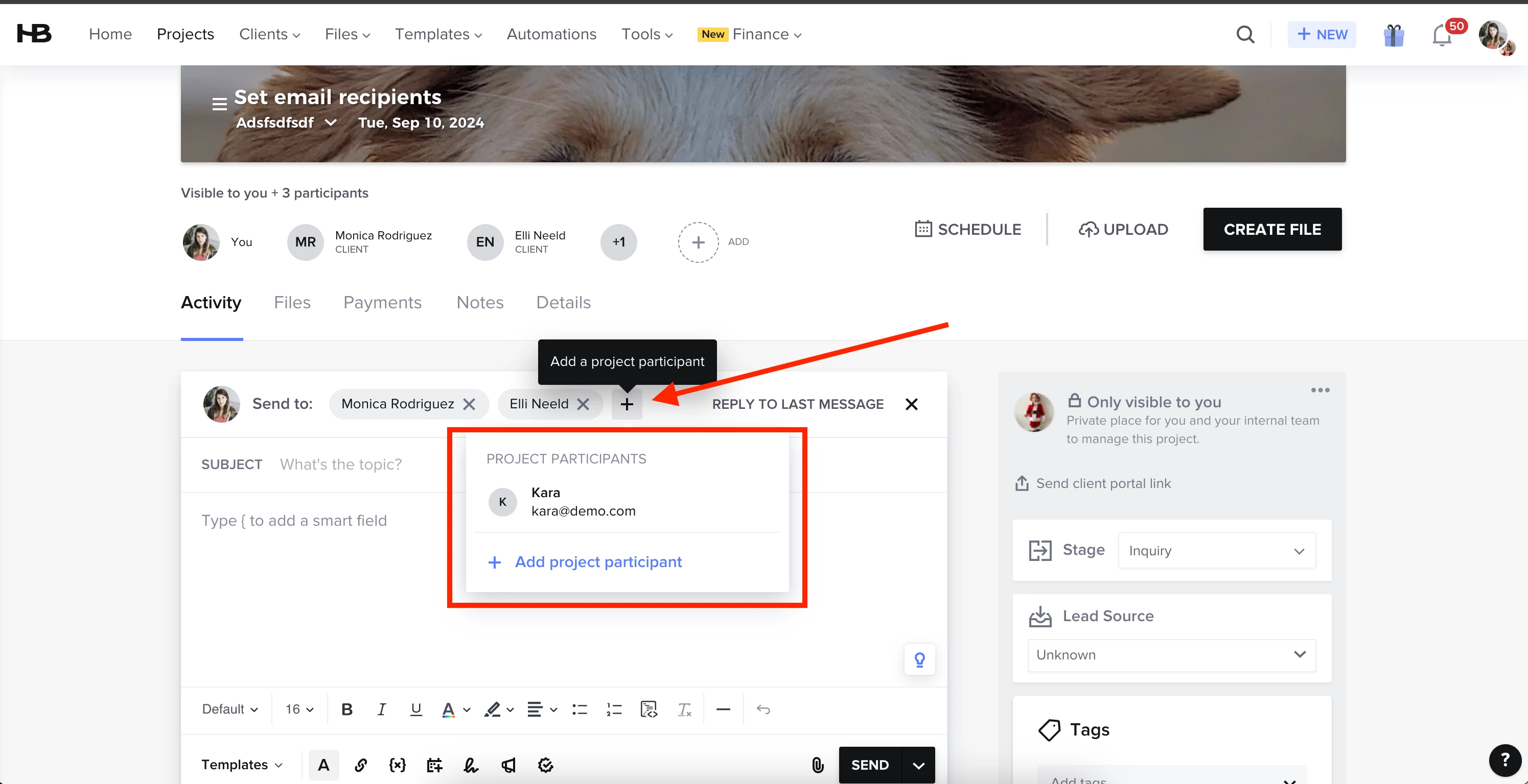Now, you can select which project participants receive your emails and have access to files. You’ll be able to choose (add, remove, or keep as-is) recipients directly from the email composer and file sharing modals, improving project efficiency and ensuring that only relevant stakeholders have access to critical information.