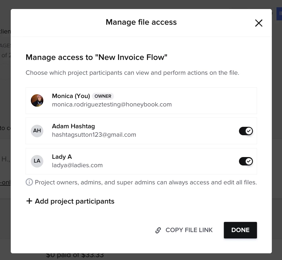 You can also now select specific recipients when sharing files from within a project. This ensures that only the intended participants are notified and granted access to the shared file.