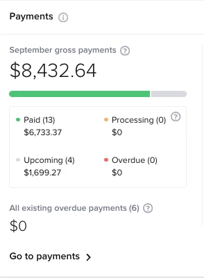 The payments section is really helpful and helps us to know how many projects we need to book to make our monthly income goals but if it’s giving me an inflated number just in case some of our clients pay early, this is not helping and could potentially harm my, and other’s businesses.