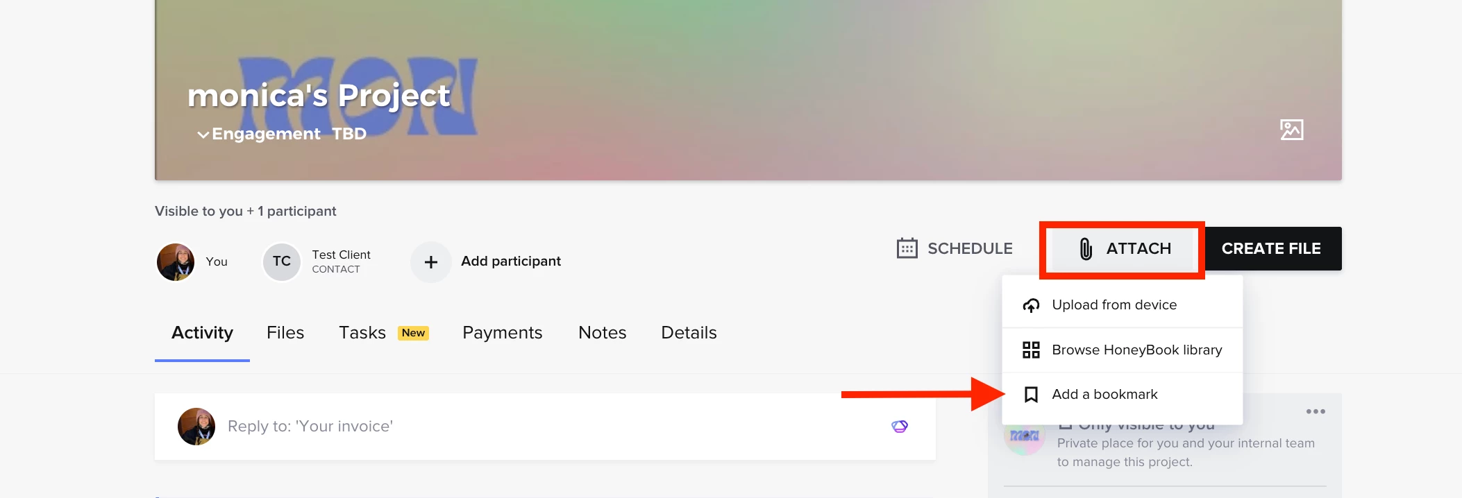 For example, we have clients upload files to a Dropbox folder — I’d love to add the Dropbox file request link to HoneyBook so clients can go into their portal and have their HB questionnaires, invoices, HB notes, and custom external links all in one like a true client portal