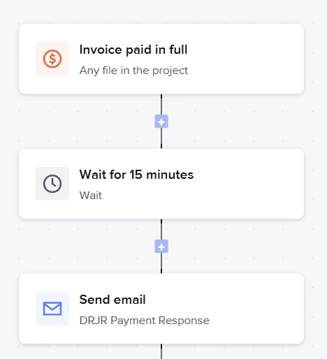 Here is the automation. I have set to invoice paid wait 15 min and send email.