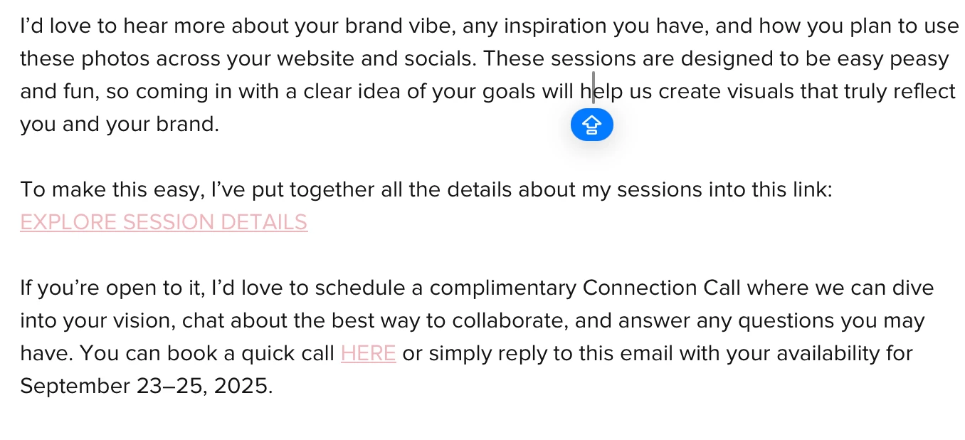 So I was writing some emails and putzing around with the newer Ai email setups and I notices that in some of the options it gave, it automatically included links. Initial thought was COOL! It managed to link my one connection call scheduler.