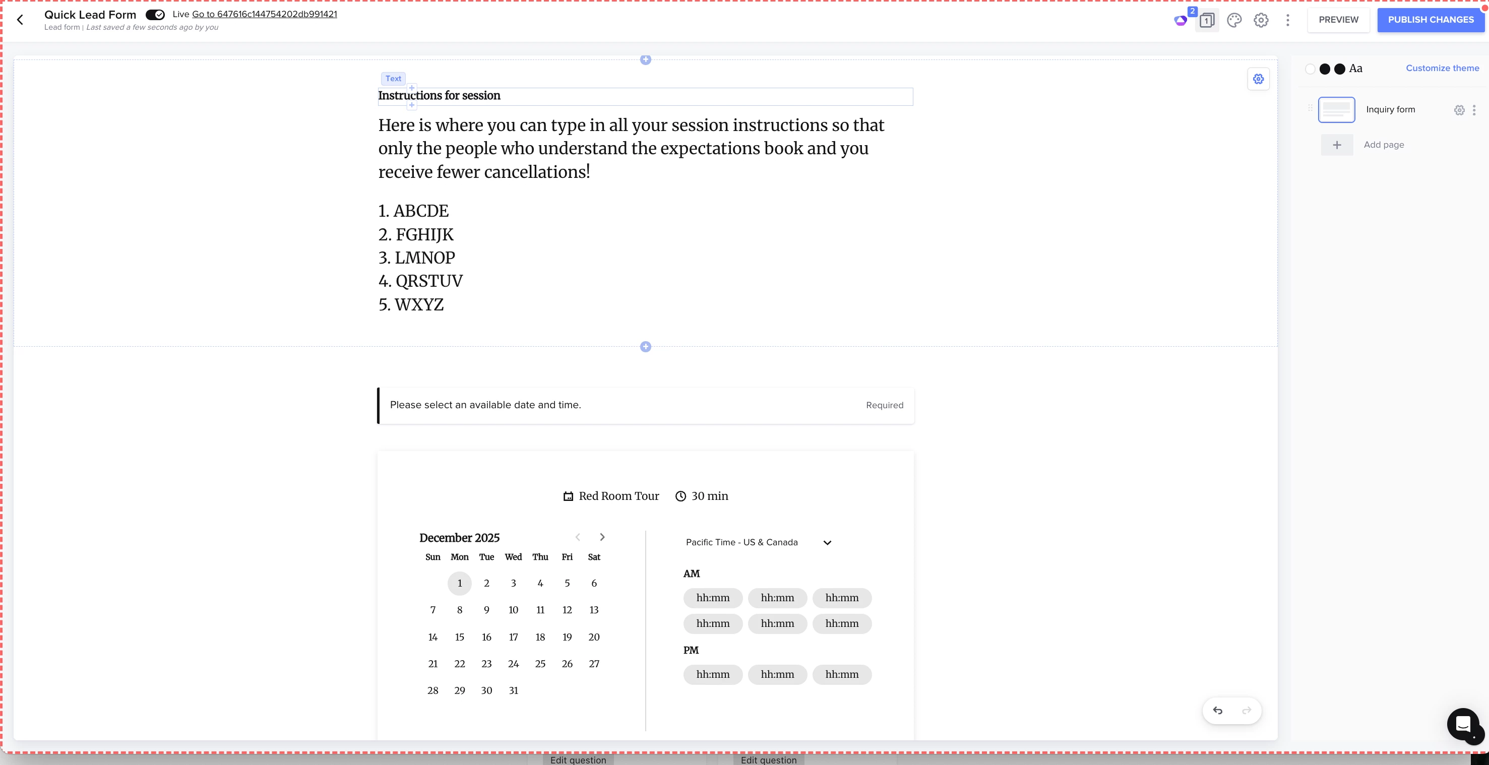 In scheduler currently there is the instructions part of the set up. From what I understand that is sent after they book a time slot? Is there any way for them to see that before hand? I am a photographer and I utilize the scheduler for mini sessions but I put all the session information there so clients can see everything. I just wish there was a way they could read through the information before booking. I can’t tell you the amount of cancellations I’ve received after they are able to see that info and how much of a headache that is. I use the links for both my website where all the info is written out for them but also for special events where I use mail chimp to send out links to upcoming sessions in batch emails (I hate honey books Batch email system. It is very difficult to use and lacks any creative layouts that catch my potential clients attention). I would just like a section above the time slots or at the top of the page where we can put some info please! Anyone else have this issue? what is your work around for it?