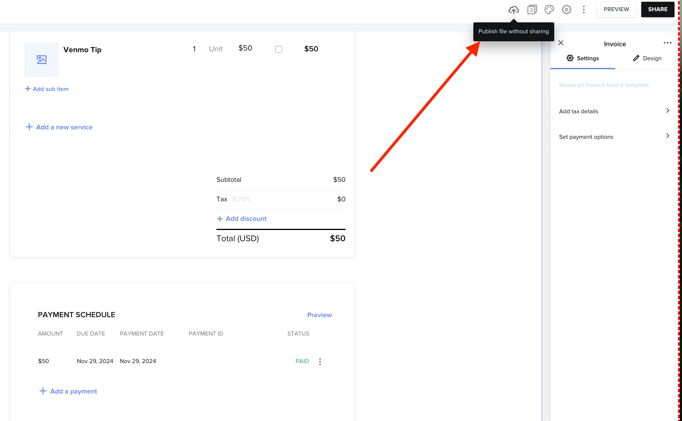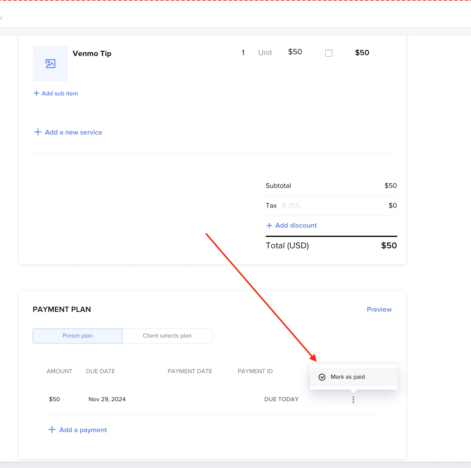 Thanks so much for writing in. You actually are able to add payments to a HoneyBook without sending the invoice to your clients! You can learn more here.