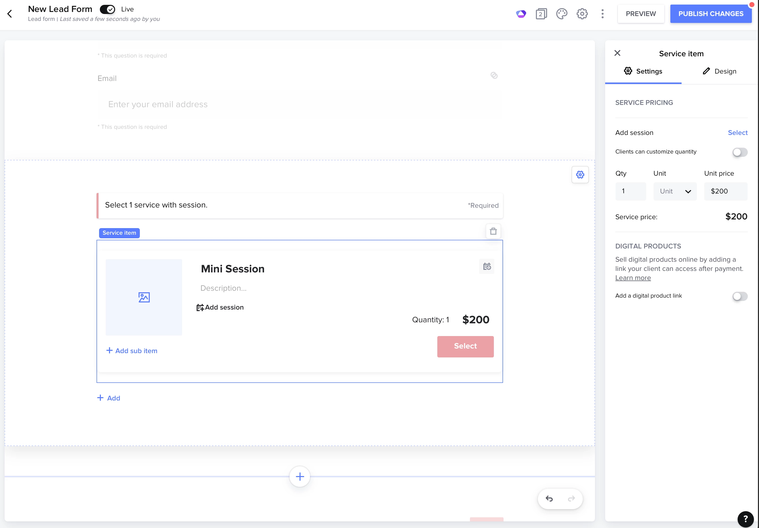 I’m using a Lead Form to book mini sessions for the first time, and I’m offering a full gallery upgrade for $100. Is there a way to make an optional ad-on that clients can choose to include at the time of booking? Thanks!