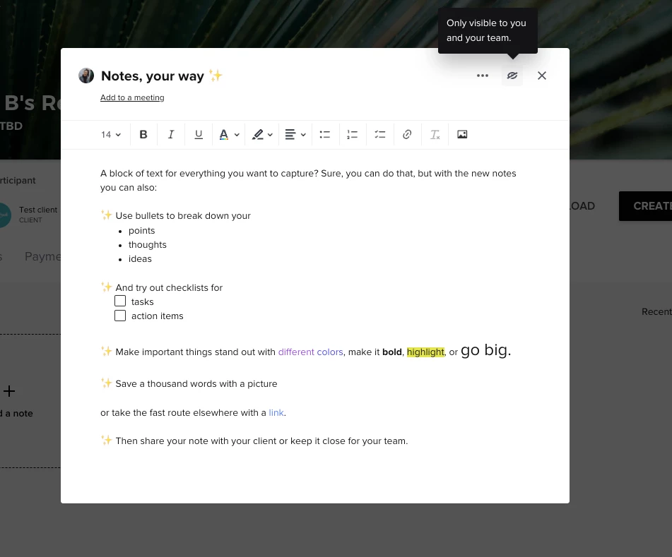 I strongly dislike the new notes format but aside from that, very important to me: are notes still private/not visible to clients?? Pardon me if this answer is buried in this strange new land somewhere— I did do a topic search before I posted.