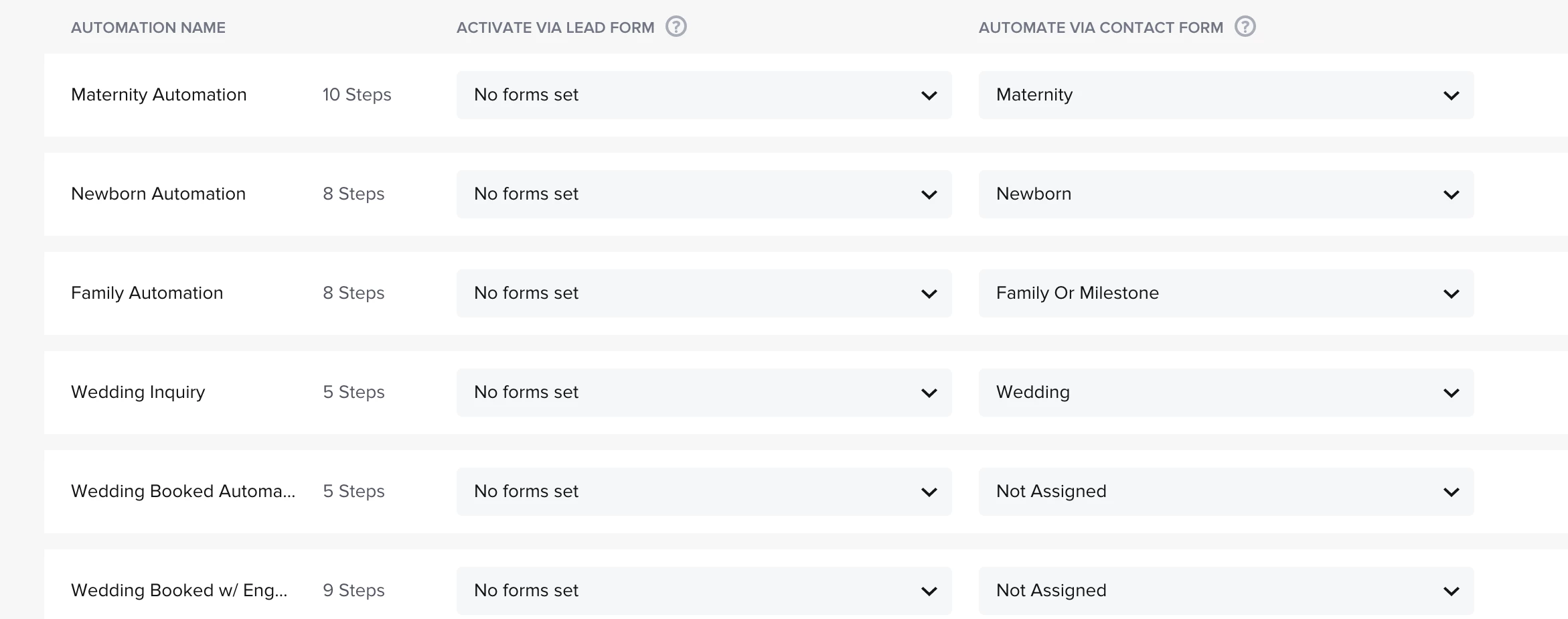 I am wanting my contact form or lead form to trigger an automation per project selected. I offer different genres of photoshoots and have different smart file and email wording for each type. I thought I had it set up to automatically send when they type of session was selected but cant figure out how with a new project type. Just an ai generated email is asked for me to approve and then I have to manually do everything.
