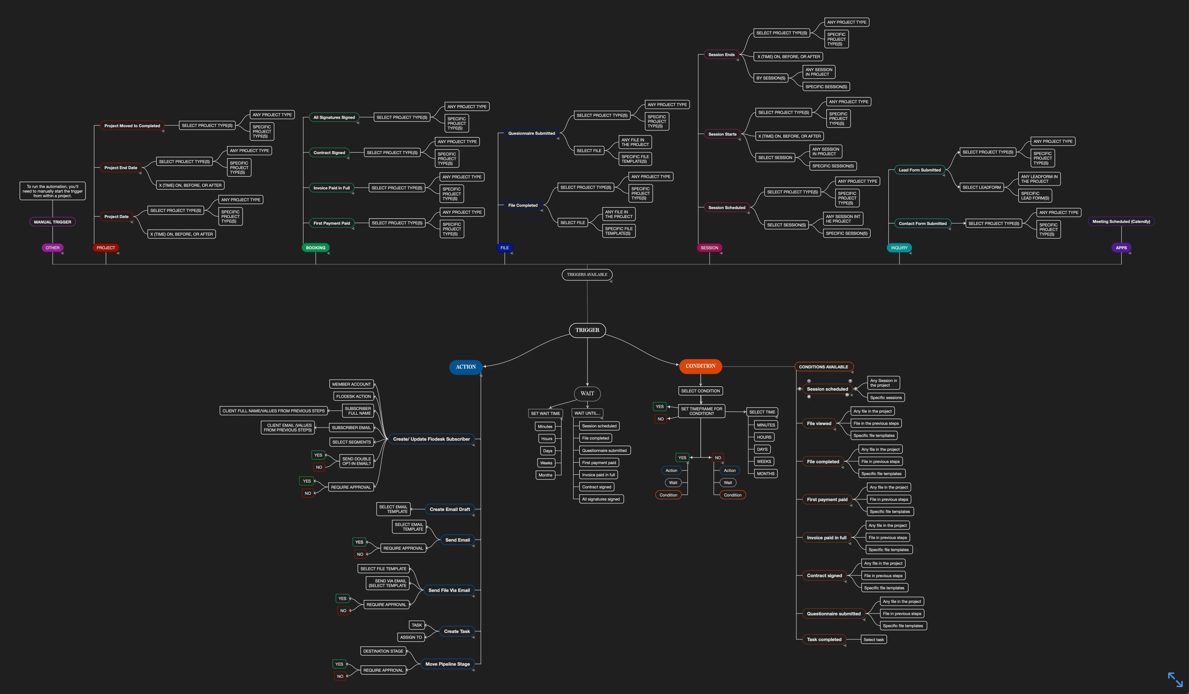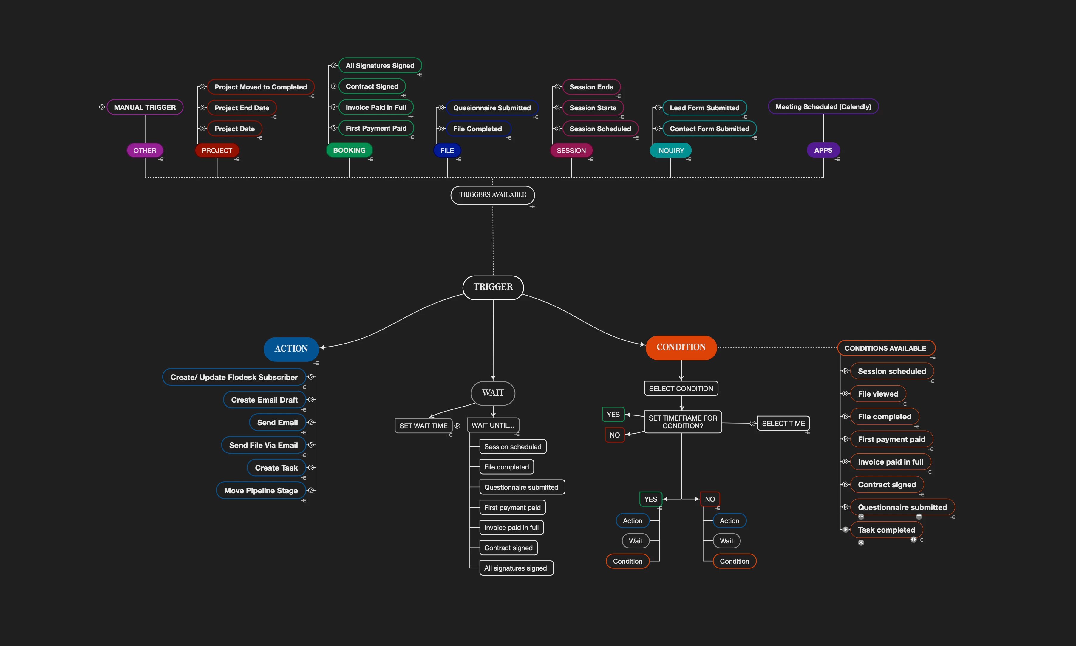 I don’t know about you, but I am a visual learner! When it comes to building out my automations I love being able to see all my options available to me. Though I do map out my ideal workflow/client experience, HOW I implement it in Automations is going to be different. I like to have this graphic side by side next to my mapped workflow so I can create it easier in the Automations Builder. Hope this helps!