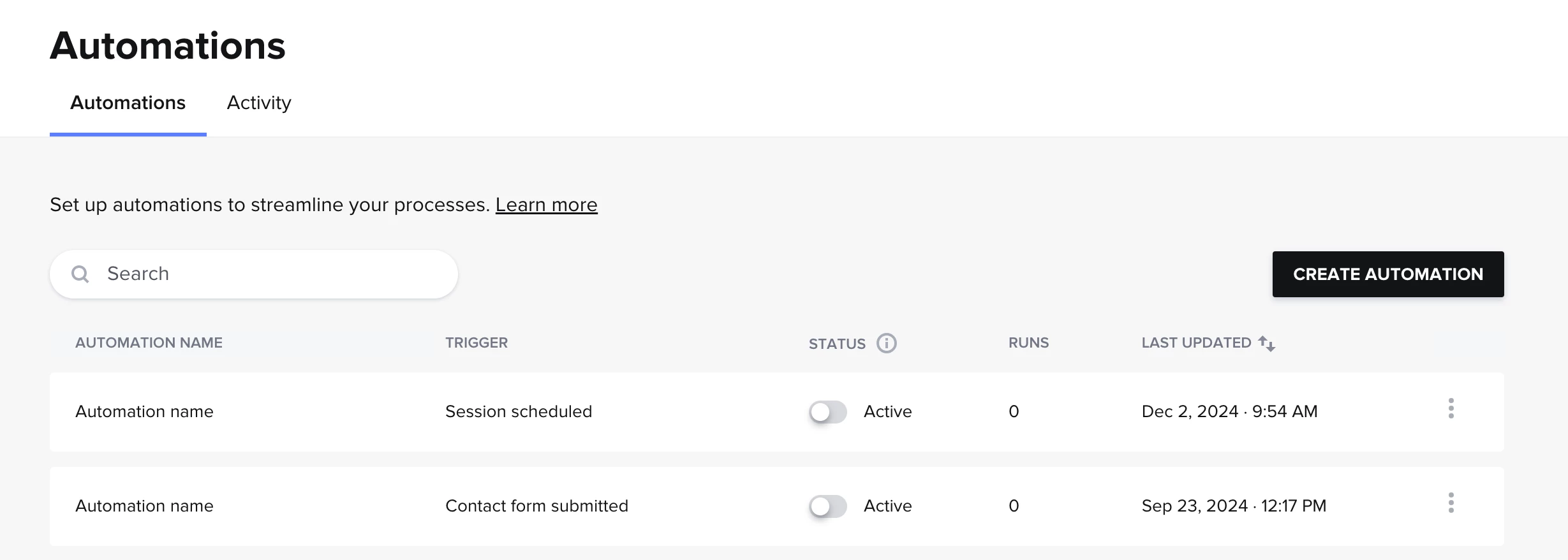 Original vs. New Builder: Based on the screenshot you provided it looks like you have the original Automation builder (image comparison below). The one Alina referenced in their previous comment was the new global Automations. If you’d like you can request the new builder by clicking the chat support button in the bottom right corner of your screen and asking for it to be installed. Note that once this happens your previous automations will no longer operate — don’t worry they aren’t deleted per se (so if you don’t like the new builder just yet you can always revert back). My recommendation is to first explore the functionality of the new builder in this help article: titled Understanding the new automations builder, and then assess if it makes sense to transition to the updated version.