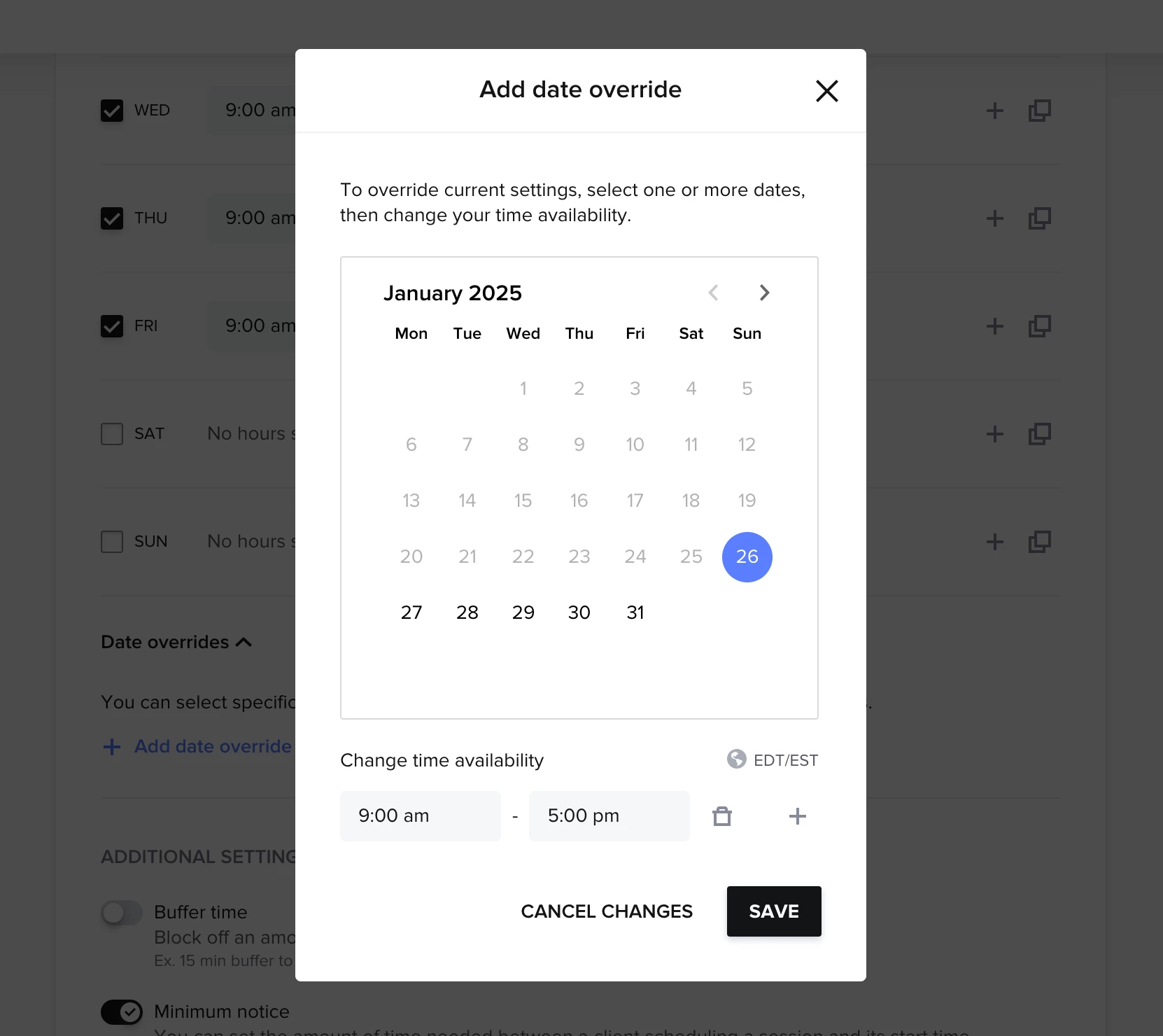 Is it possible to set my availability without synching my calendar? My available times are different for each session type (studio vs home vs outdoors) and some types i like to restrict to limited times…