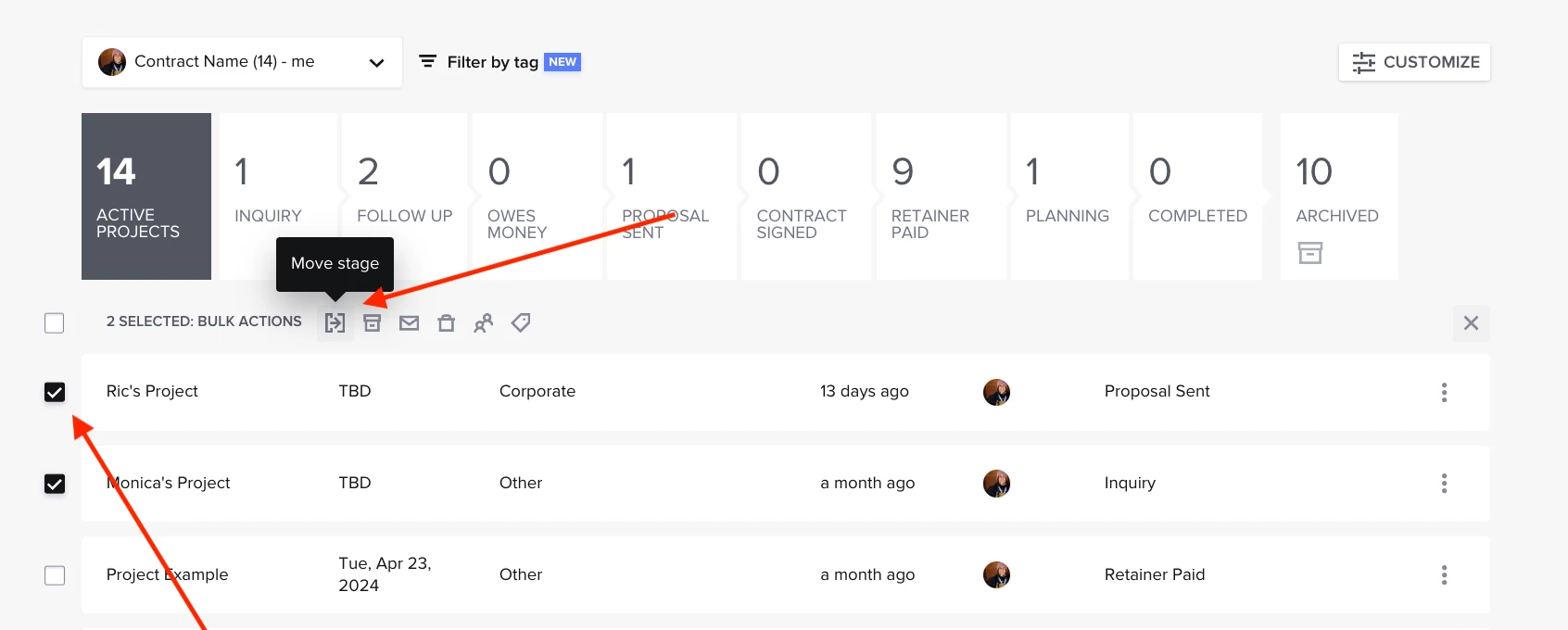 I would really like to be able to update a Project’s stage without having to go into every single project, change the stage, then back out and back to the top of the page.