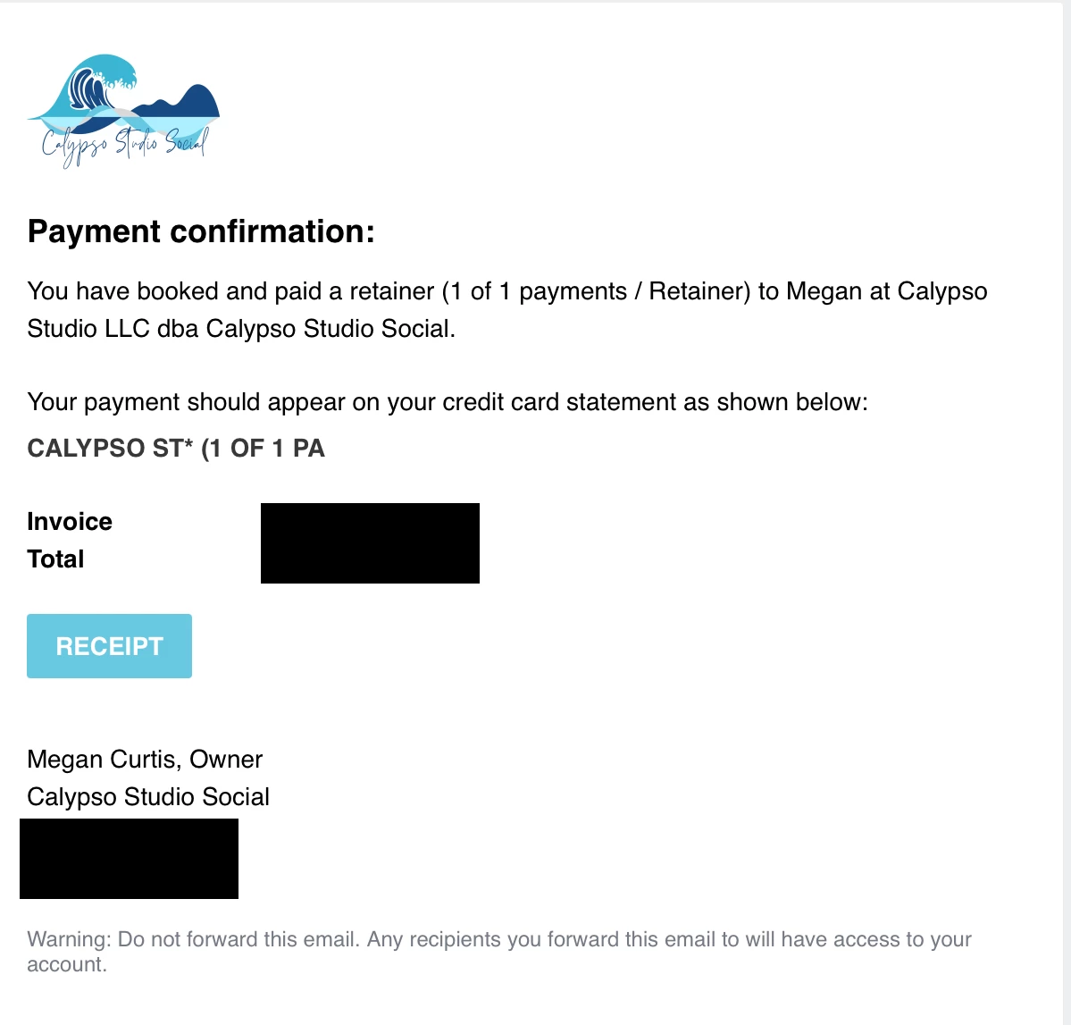 You can’t customize the payment receipt emails. While it’s not technically a ‘retainer’ since you already provided services, the word retainer is great verbiage in case of a CC dispute. Retainer = nonrefundable. That way, nobody can claim it was a deposit for services that can be refunded.