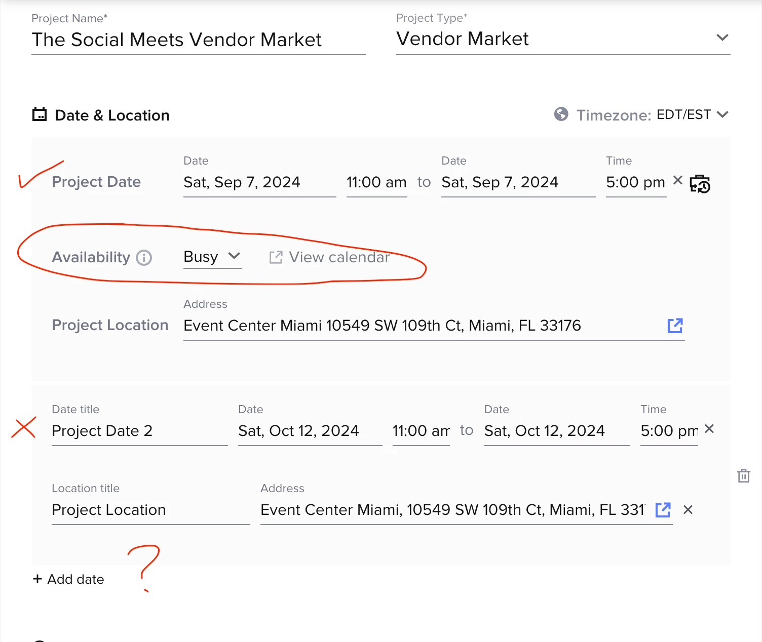 It seems as if the “Availability function” that links to your calendar is only available for one date at a time. This should be something that is added because this whole time I thought I had the second date/time available for another booking only because it was not showing. (See attachment)