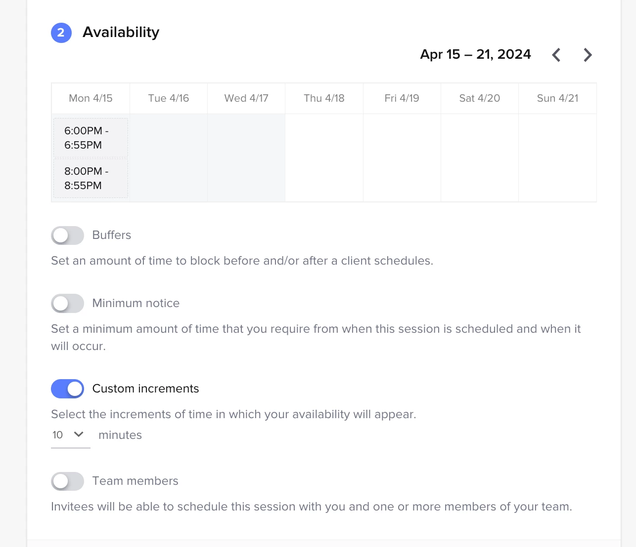 For example: I provide sports action coverage for youth sports. I limit it to 5 players per game and parents need to pre-register and pre-pay as I only photograph registered players. If there is a game at 6pm and one at 8pm, I need a way to have 5 slots for 6pm and 5 slots for 8pm.