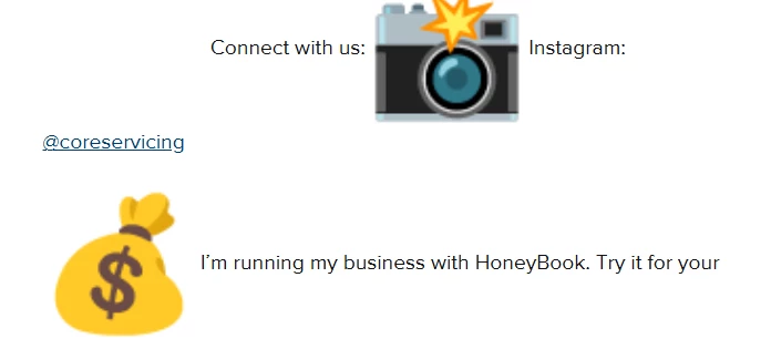 I’m not sure if anyone else noticed this but below is a glitch I noticed this morning in my email signature. The email signature looks fine in HoneyBook, but when you go to gmail, this is what the signature looks like. As you can see the emojis are huge. This has nothing to do with font size as they were fine on the 11th in gmail and also normal sized in HoneyBook I deleted the emojis for now. Just wanted others to be aware.