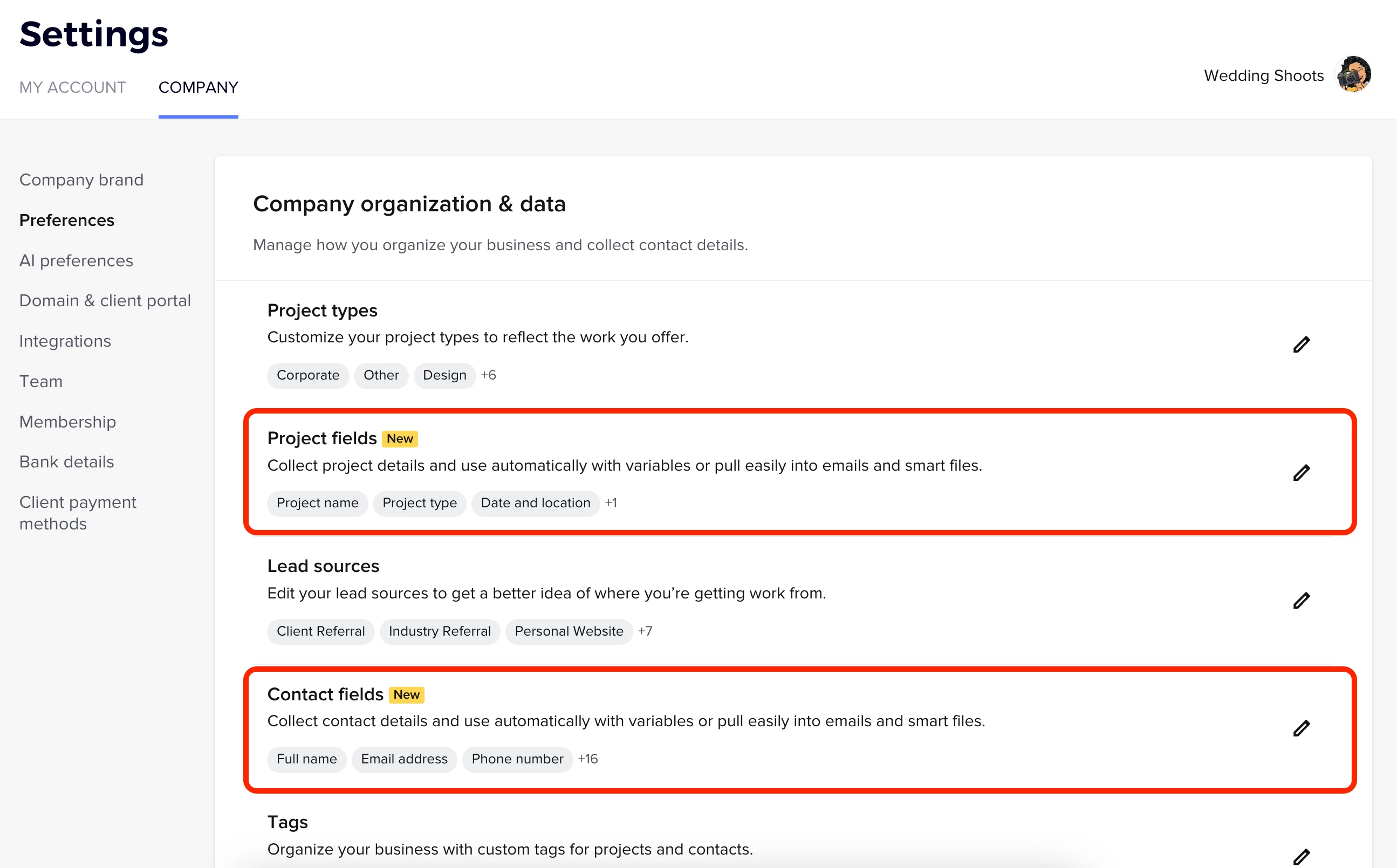 or on the client details for the project