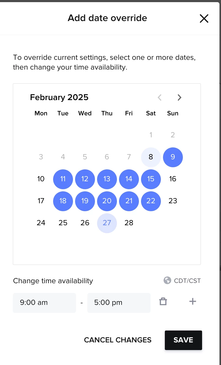 The “all or nothing” scheduler is killing me! I don’t want new projects booked while my schedule is blocked off by a project, but I do need to be able to take new discovery calls to line up my next project.