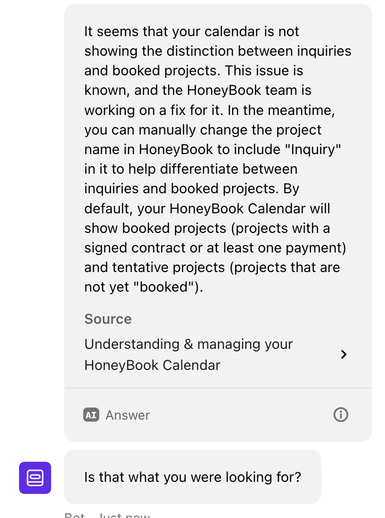 I have my google calendar linked to my honeybook. Up until this week, it would have a project displayed as inquiry in my google calendar until they were booked and then it would reflect an official project. Now, all projects look the same in my calendar- booked and pending inquiries. Is there a way to fix this?