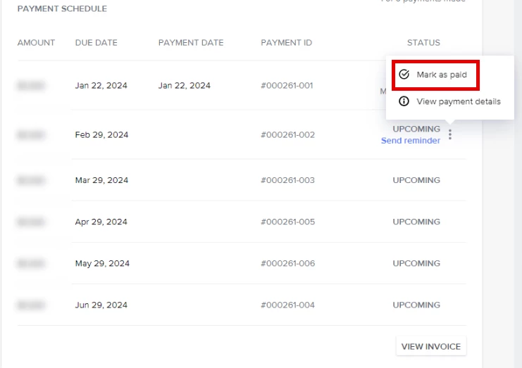 I will be receiving payment via CHECK and can’t figure out how to mark the payment as paid. Can anyone help me on how to find this option / if it’s an option. I’m a visual learner so screenshots would be SUPER helpful, if possible.