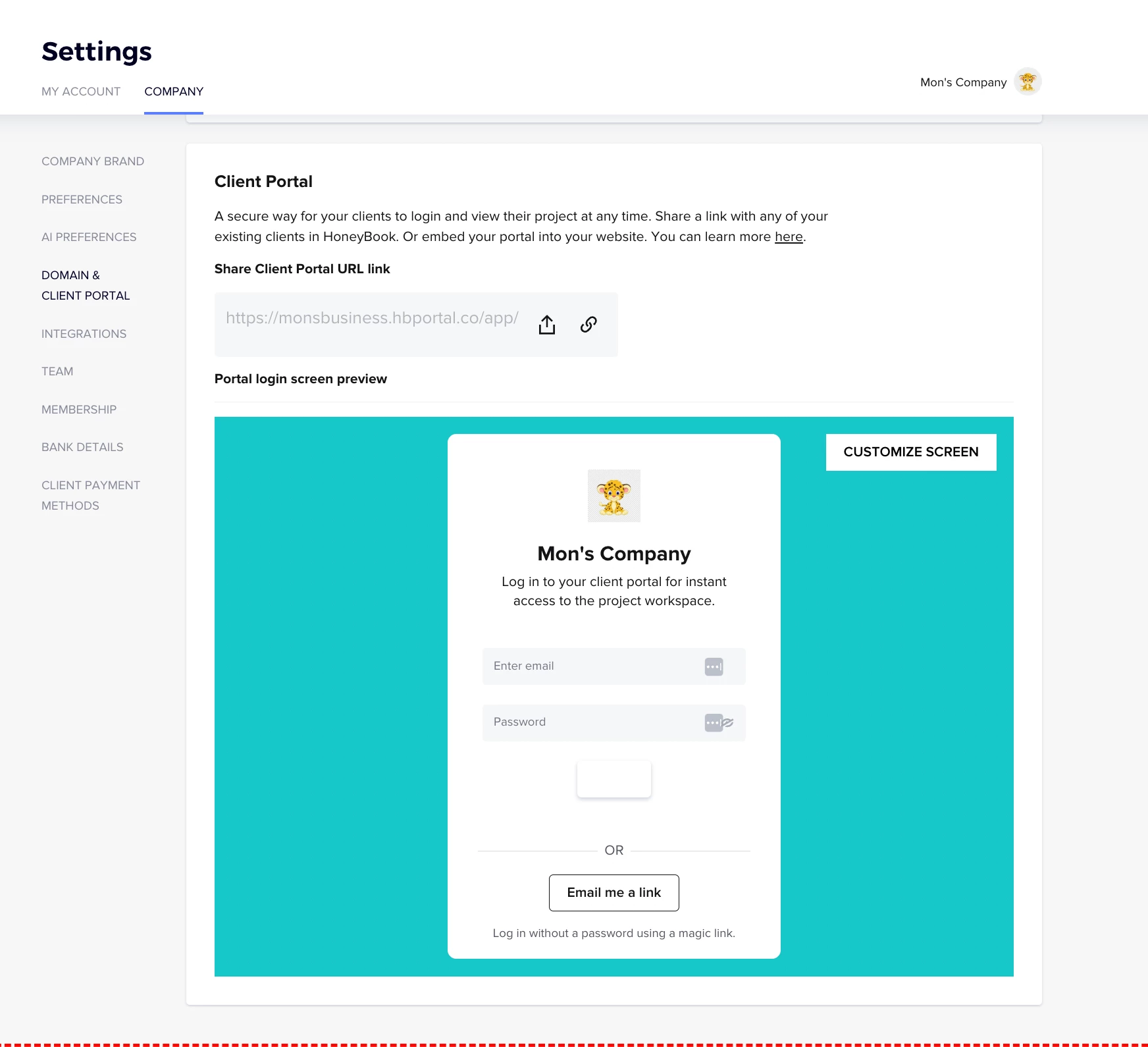 You will see the HoneyBook login page briefly to validate your trial or account.