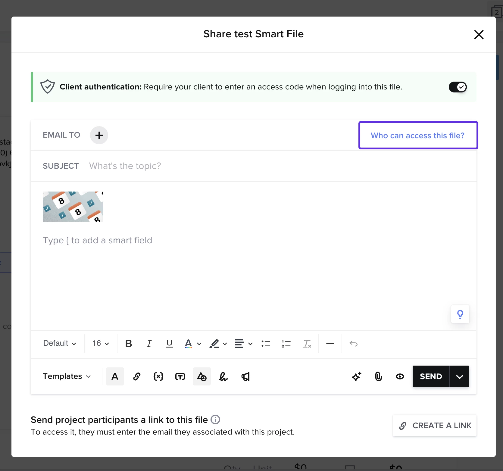 Does anyone have any knowledge, experience or idea on how I can put into place a Team member only smart file to be filled out and submitted by the Team Member who is leading the project (and not for the client to see)?